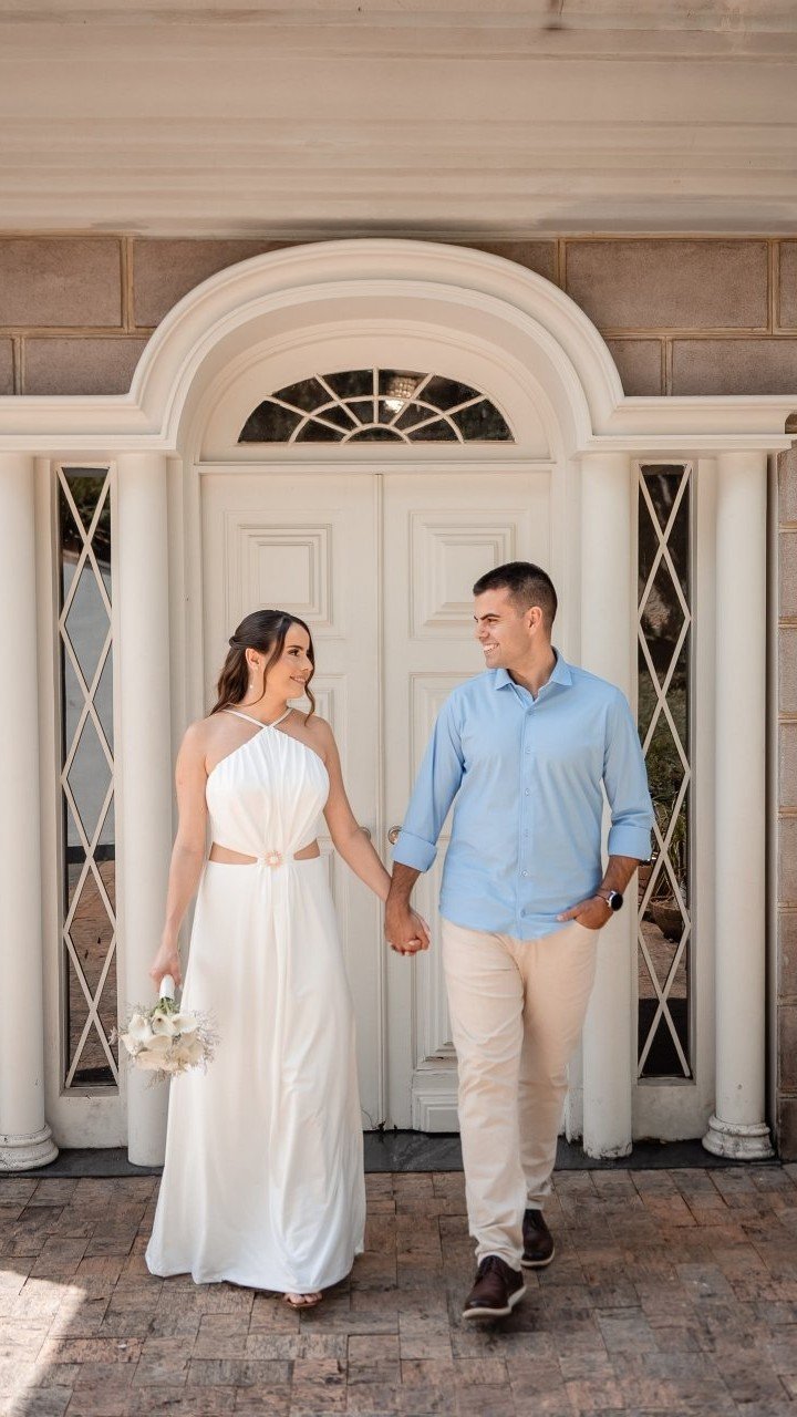 Depois disso, em 2023, viajamos para Gramado no mesmo dia que o noivo fez a prova do concurso em que trabalha atualmente. Um misto de ansiedade pelos resultados e também pelo pedido de casamento que já estava no roteiro. Com a aliança da vó escondida na mochila, o pedido foi feito em um café da manhã em uma cachoeira que haviam nos indicado. Um lugar maravilhoso! Agora, em 2026, aguardamos para comemorar nosso grande dia e contamos com a presença de vocês para celebrar essa história de amor, desafios e conquistas!
